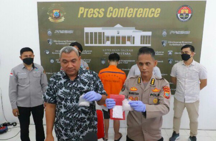 Pengungkapan kasus tersebut dijelaskan Kabid Humas Polda Sulut Kombes Pol Iis Kristian bersama Dirresnarkoba Kombes Pol Budi Samekto, di Balai Wartawan Polda Sulut, Jumat (21/7/2023).
