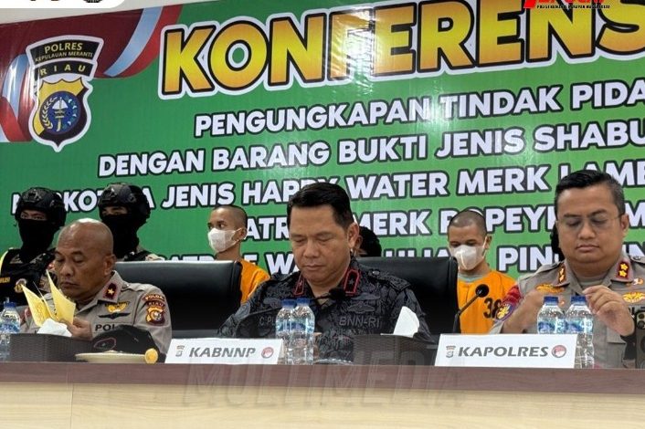 FORUMADIL, Pekanbaru — Kepolisian Republik Indonesia melalui Polda Riau bersama Polres Kepulauan Meranti berhasil menggagalkan penyelundupan besar jaringan narkoba internasional asal Malaysia. Dalam operasi yang dilakukan pada akhir September 2025 itu, petugas menyita 30,7 kilogram sabu, 1.034 liquid vape mengandung narkotika, serta 24,3 kilogram cairan psikotropika bermerek “Happy Water Lamborghini” sebelum sempat beredar di Indonesia.